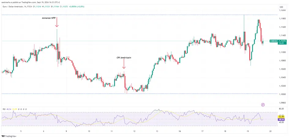 Les prévisions annonçaient une baisse des taux de 0.25 bps, confirmé en grande partie jusqu’au début du mois de septembre, avant de connaître les chiffres de la création d’emploi non agricole (NFP le 06/09) et d’inflation (CPI le 11/09) tous deux moins bons que prévu.